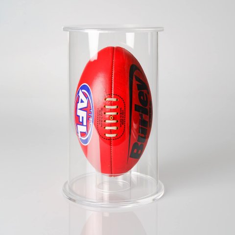 Football display tube with Black , White or Clear base and lid.