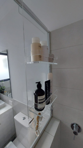 The Deluxe Long has two standard shelves as well as an accessory bar perfect for things like razors and flannels. The perfect way to de-clutter your shower stall. As with all our caddies, it is built from plastic and as such is easy to clean and doesn't corrode.