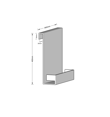 Overall dimensions are approximately 400mm high by 360mm wide with 100mm deep shelf